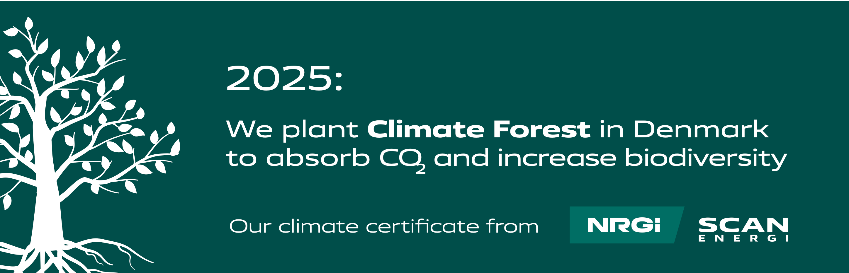 In collaboration with our energy provider, we plant 200 new trees each year in Denmark to reduce CO2 in the atmosphere. The KLIMAskov initiative focuses on both CO2 sequestration and biodiversity, as the trees absorb CO2 throughout their lifetime and provide habitat for various animals, helping to slow the decline in biodiversity. The 200 trees that Biosa helps plant each year will absorb more than 400% of the CO2 we expect our electricity consumption to emit this year. As a company, we do what we can to make as many sustainable choices as possible for the benefit and enjoyment of our shared environment.
